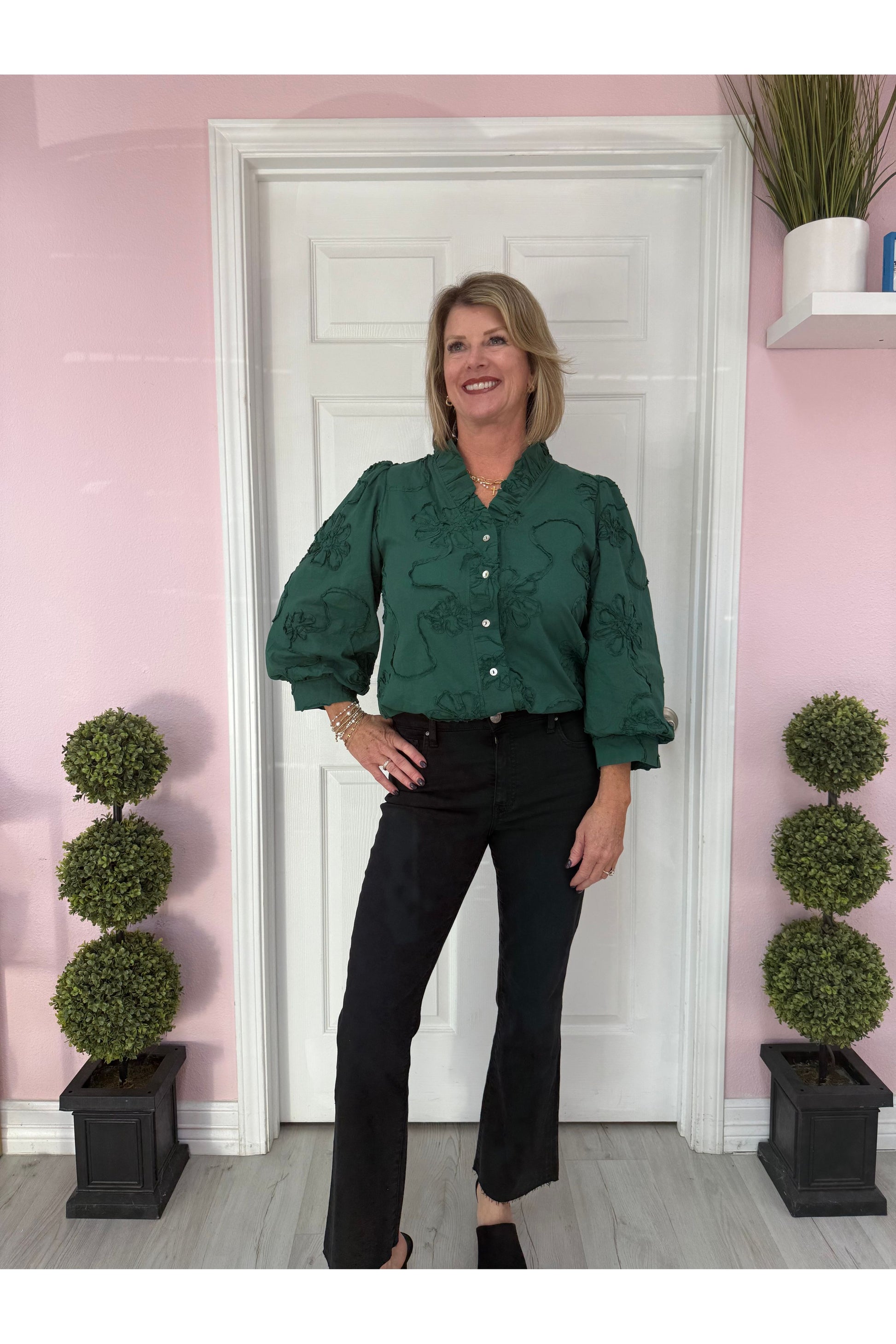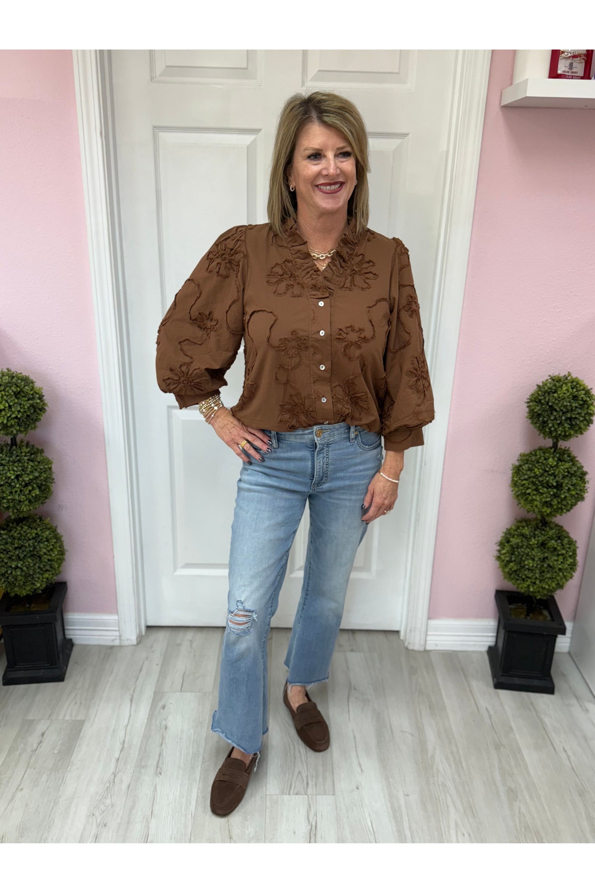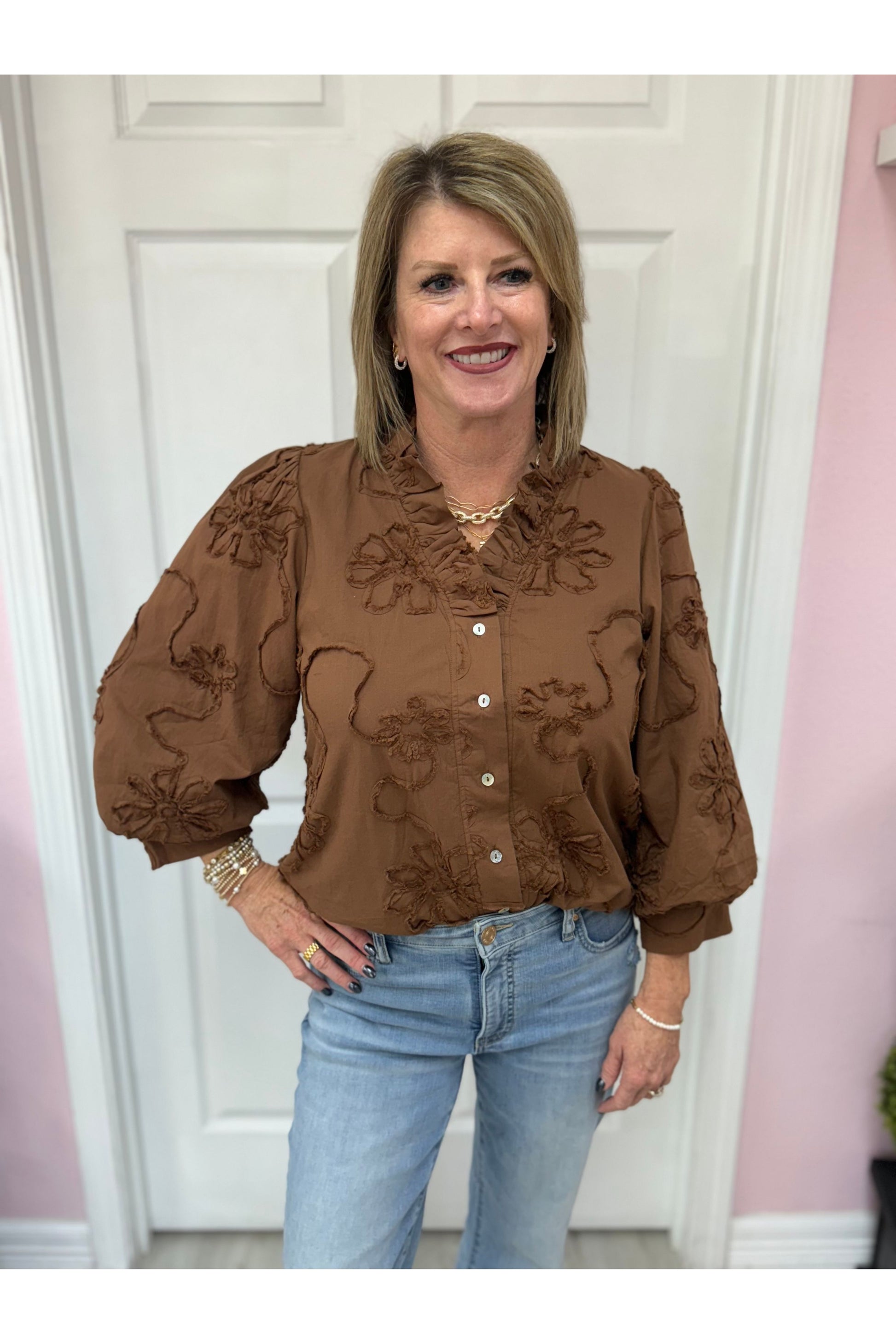 3/4 Sleeve 3D Floral Top