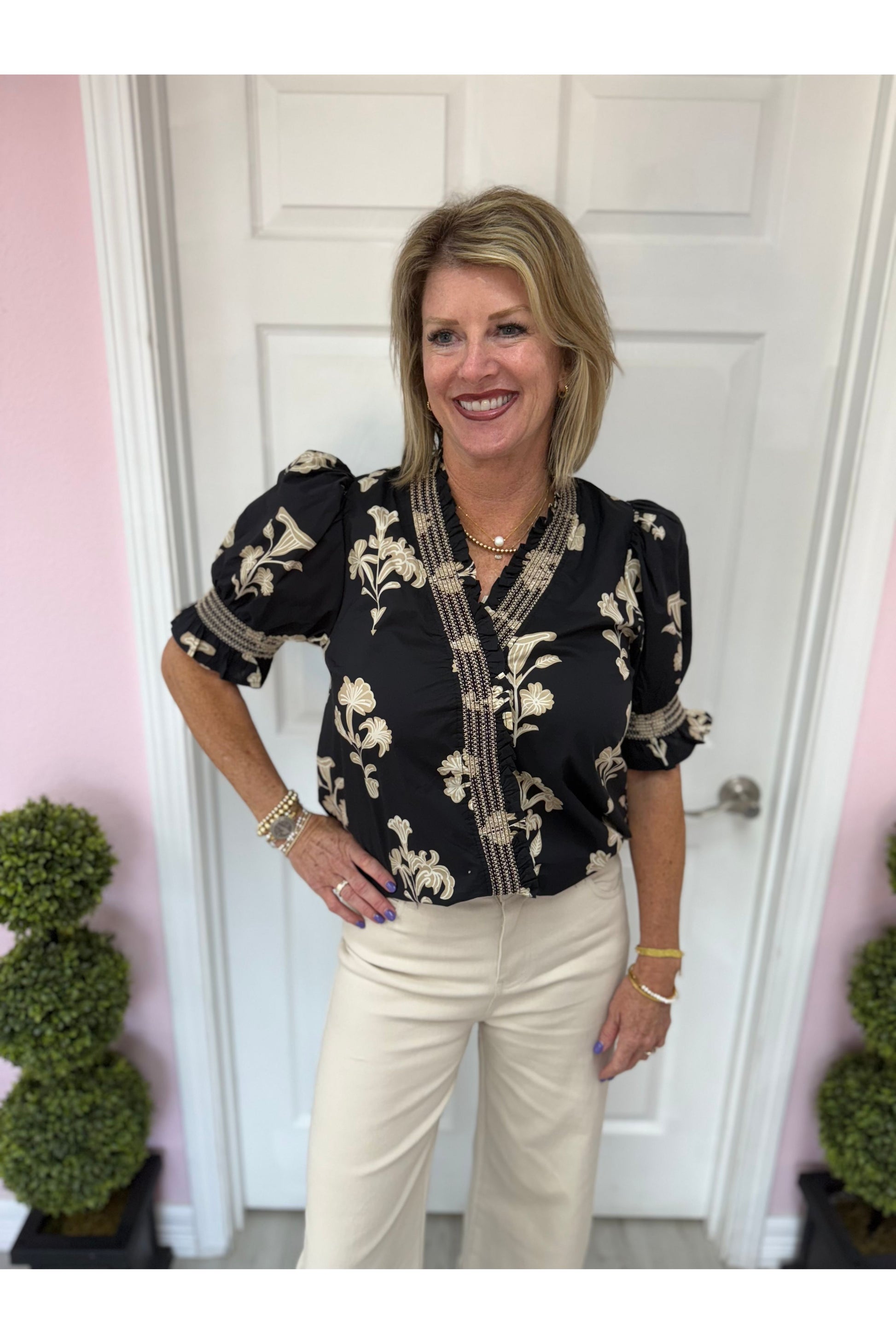 Camden Floral Print Smock Neck Blouse