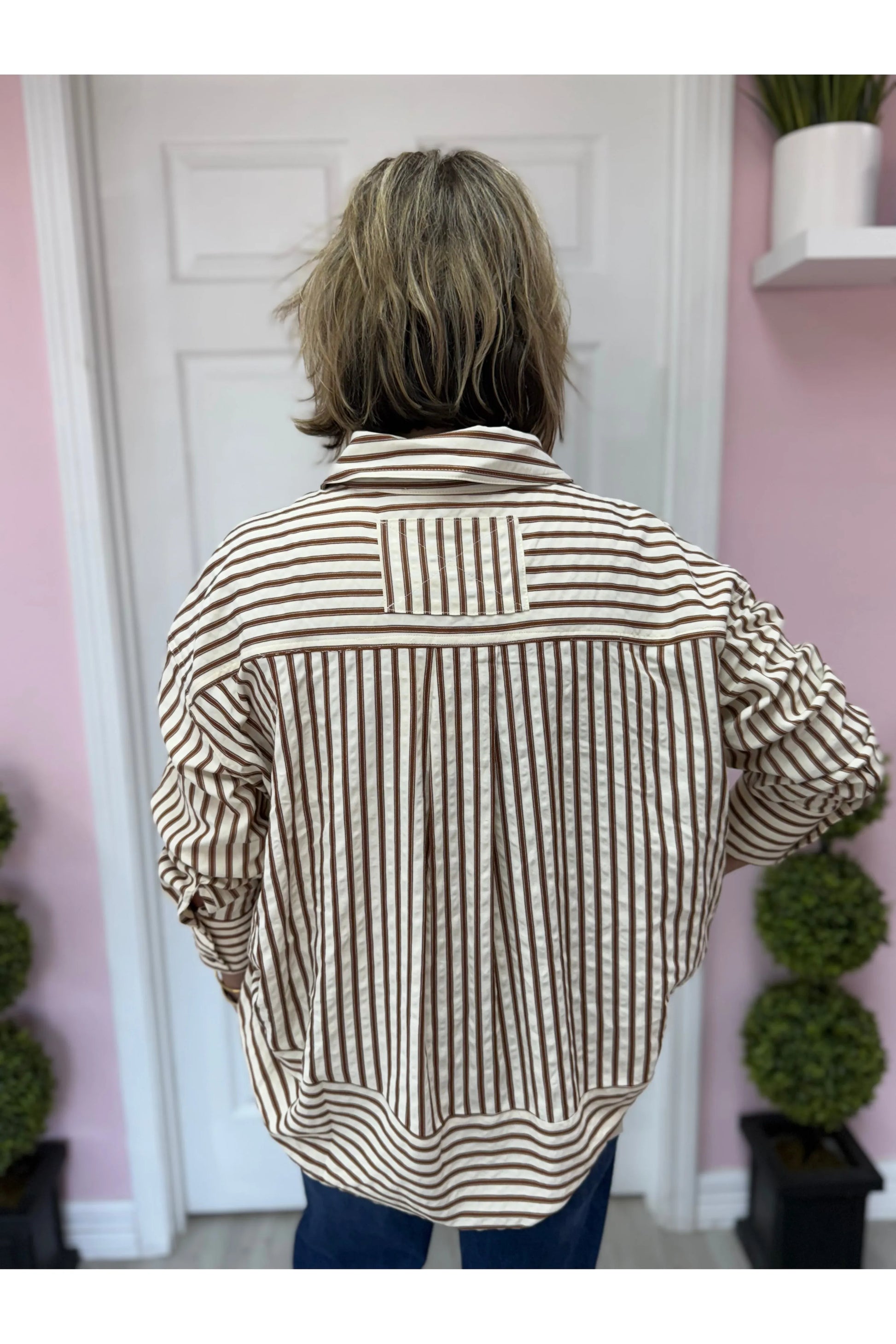 Coffee Striped Long Sleeve Top