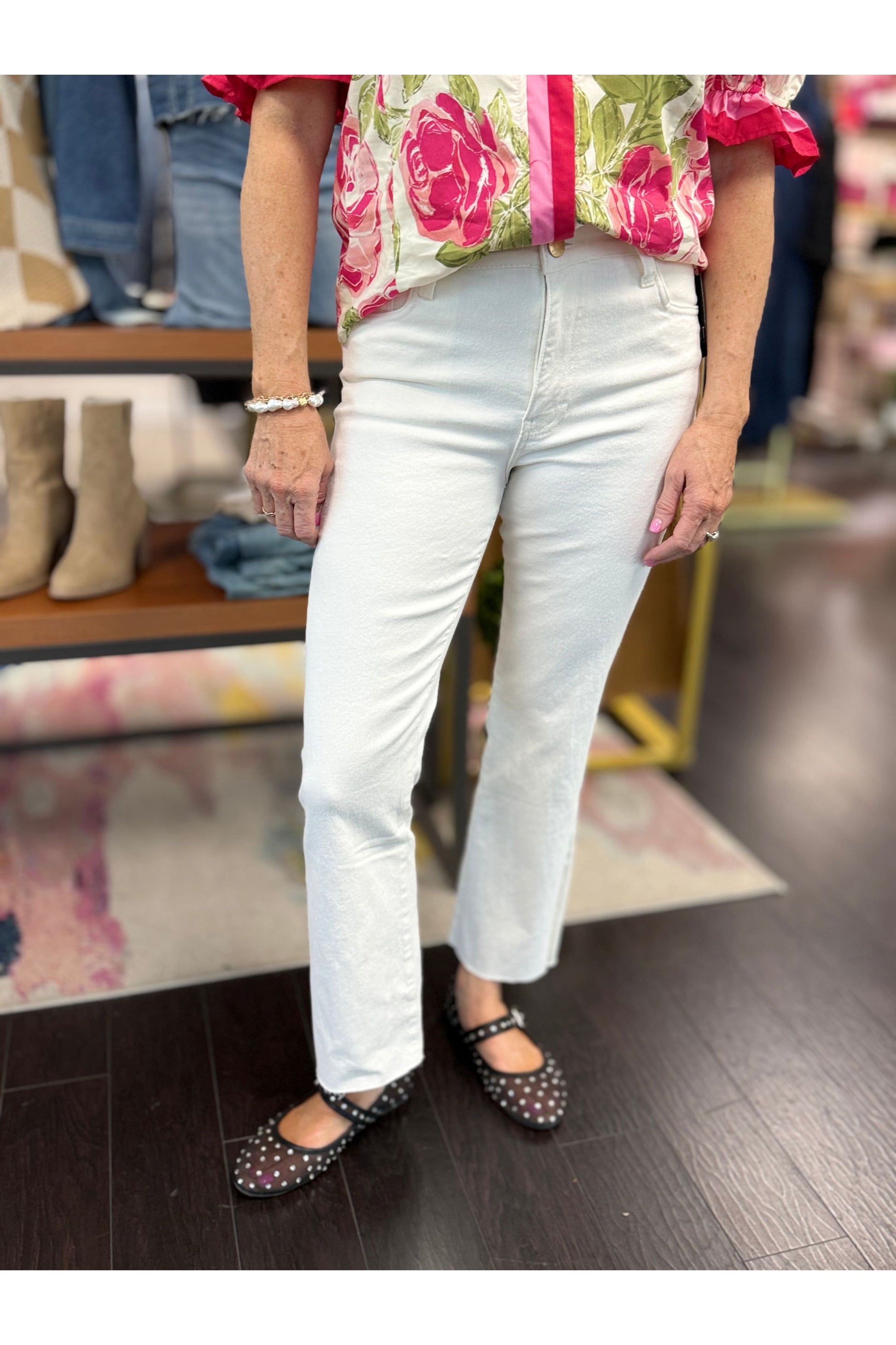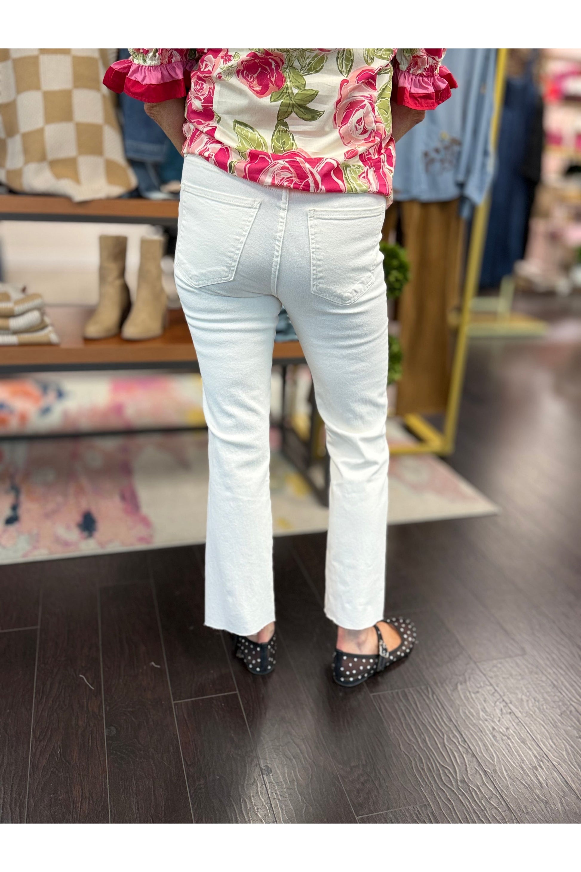 Ecru Mid Rise Zip Fly Ankle Length Pants