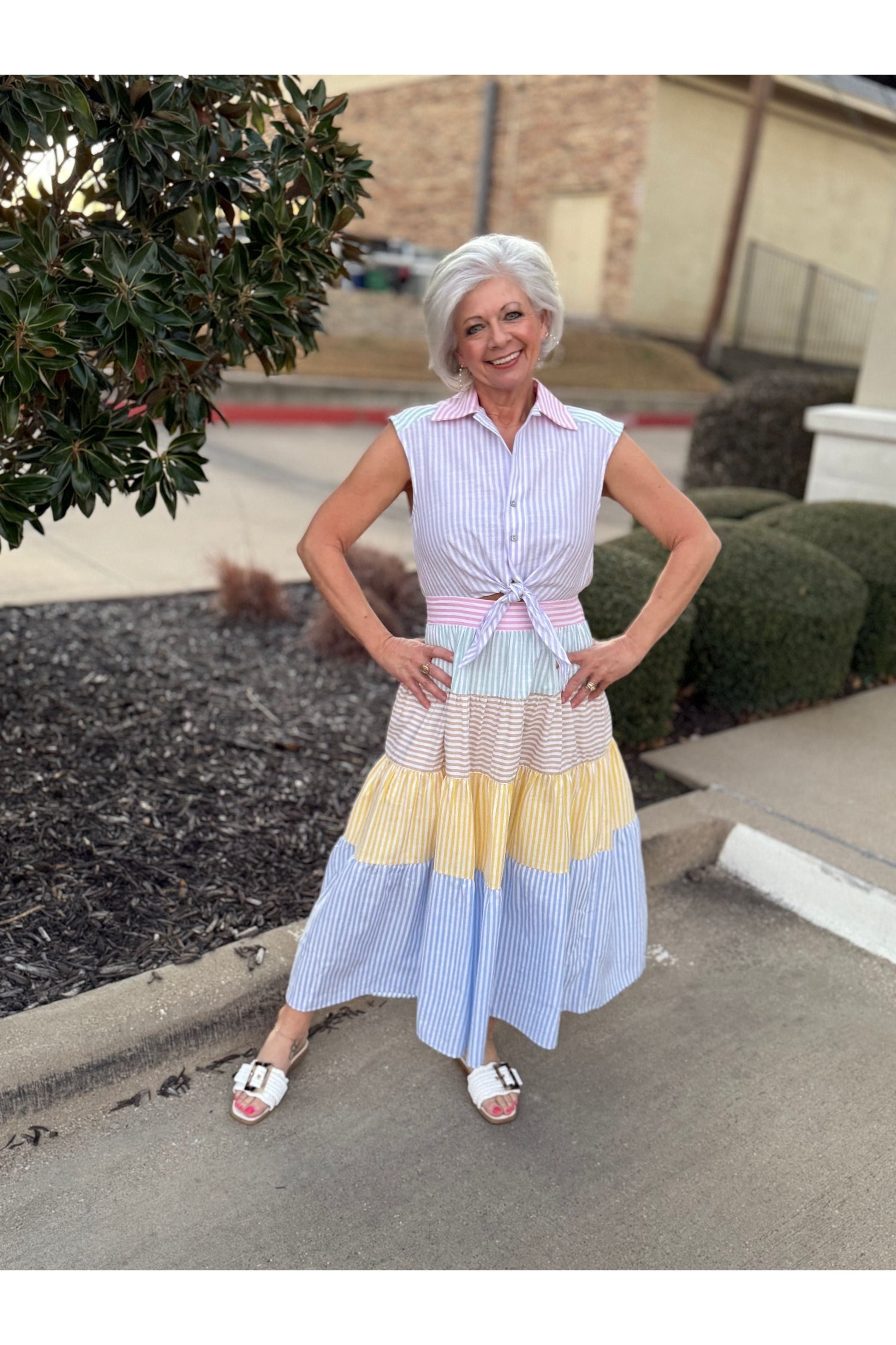 Striped Colorblock Sleeveless Midi Dress